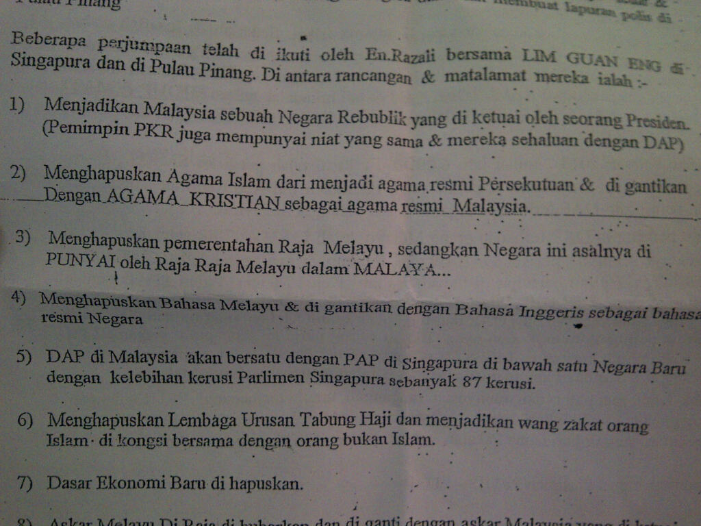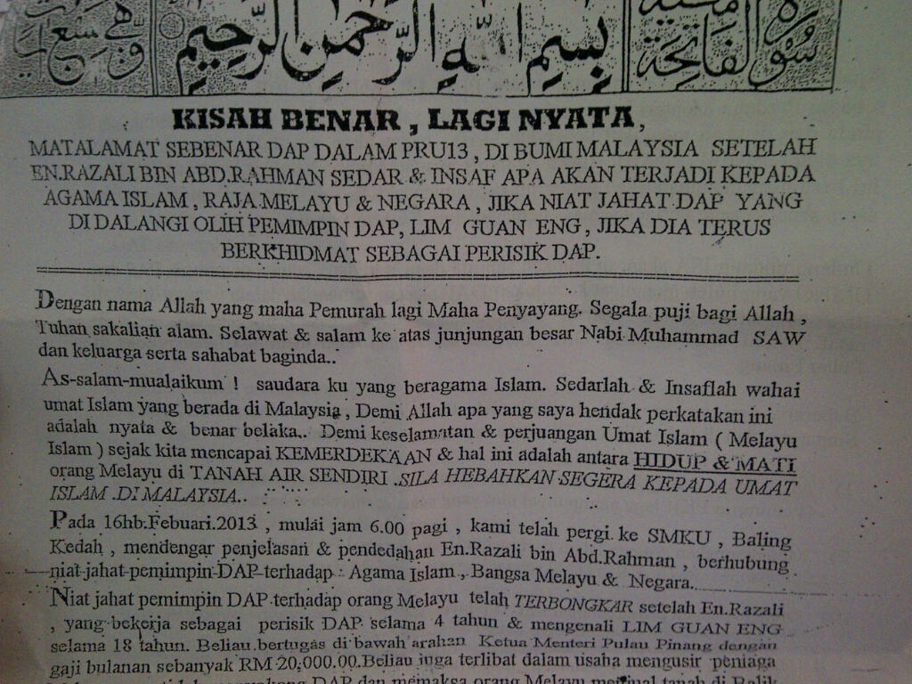 “Hal ini meyakinkan lagi bahawa gagasan 1 Malaysia yang selama ini dilaungkan Najib adalah pernyataan hipokrit. BN sebagai gabungan komponen parti politik sebenarnya tidak penah menghayati falsafah di sebalik moto ‘1 Malaysia’ yang menjanjikan pertumbuhan sosial yang inklusif dan intergrasi perpaduan di kalangan rakyat Malaysia berbilang kaum,” kata beliau.