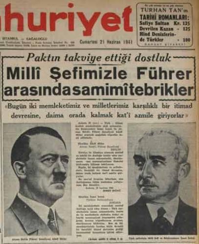 Sebelum Jerman menyerang Soviet, rejim itu pada 18 Jun 1941 telah menandatangani perjanjian persaudaraan dan saling tidak-menyerang (non-aggression) dengan Turki. Beberapa hari kemudian Jerman berjaya menawan beberapa kawasan Soviet. Dengan liciknya, Turki telah berjaya menjadi pengimbang kepada kuasa-kuasa besar dalam Perang Dunia Kedua dengan kelebihan geo-politiknya dan kelicikan dalam rundingan mereka mencipta situasi menang-menang.