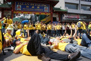 Ada yang main bola pantai, ada yang bernanyi, ada yang selit bunga ke baju FRU, semuanya ceria dan tersenyum. Tetapi hanya sehingga jam 3 petang. Selepas itu Kuala Lumpur jadi separa neraka. Dan selebihnya yang turun ke jalan sahaja yang tahu.