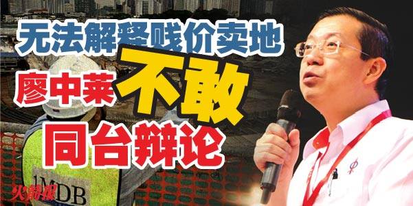 廖中莱不敢与我同台辩论,是不是因为他无法解释槟州政府以高于市场价三倍的价格出售土地,不像国阵联邦政府,以低于市场42倍的贱价,把土地卖给1MDB?