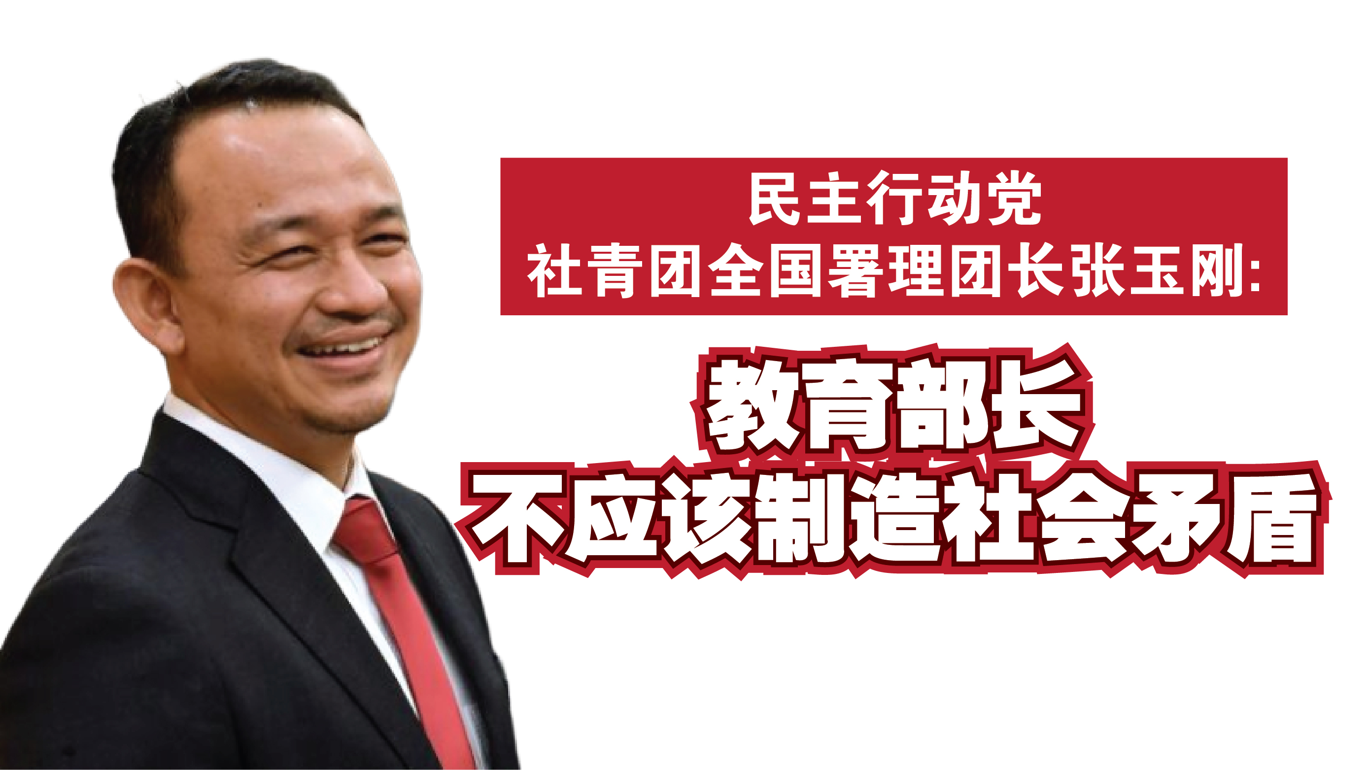 张玉刚表示,马智礼作为新政府的教育部长,理应坚定地推动改革议程,着手逐步淡化各种因偏差制度造成的矛盾,在平等互助的基础上逐步化解种族问题,为我国社会的长远发展、竞争力与福祉做出努力,而不是发表似是而非的言论制造更多对立和矛盾,为新政府的改革开倒车。