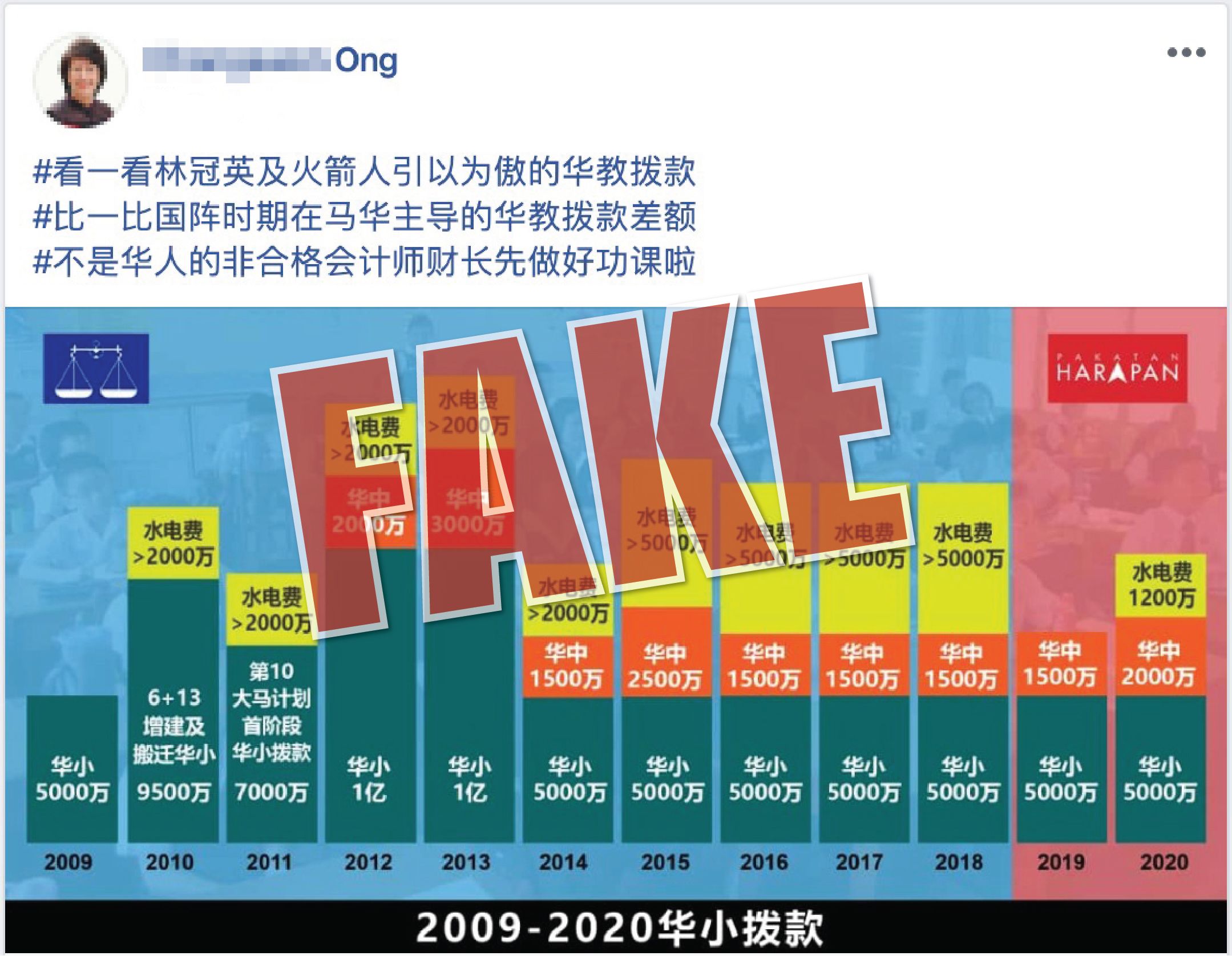最近有消息流出,指说在国阵时代华小、华中拨款高于希盟政府的拨款,然而这项消息已被证实是假消息。呼吁网民不需要转发,以免误导大众
