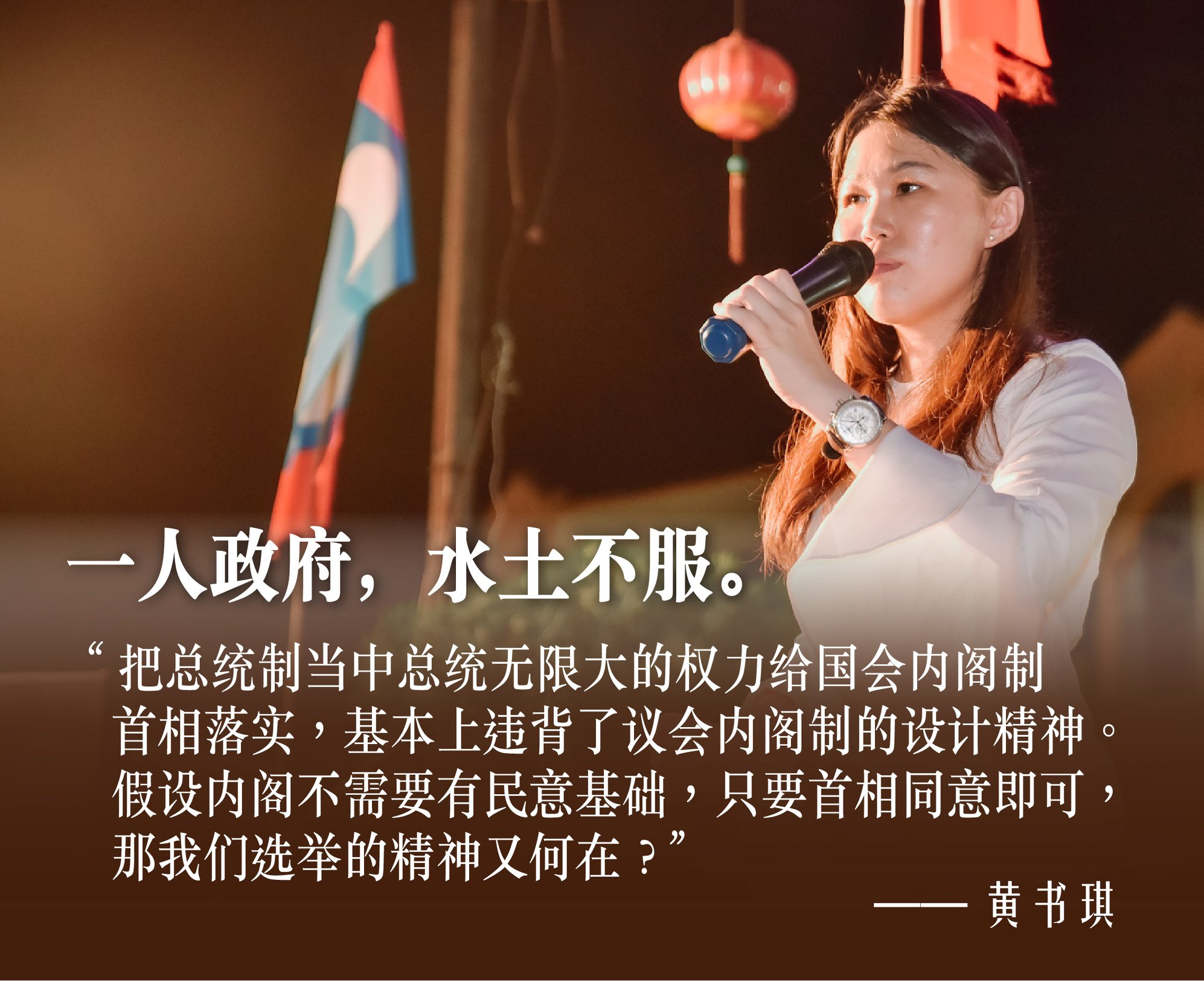 两个制度各有优劣与各自运作的民主精神,因此我们不需要争议何者比较好。在这里的问题是,把总统制当中总统无限大的权力给国会内阁制首相落实,基本上违背了议会内阁制的设计精神。假设内阁不需要有民意基础,只要首相同意即可,那我们选举的精神又何在?那我们应该要有一个“首相(总统)选举”的全国投票,而不是单一选区投票出来的人选决定一切。