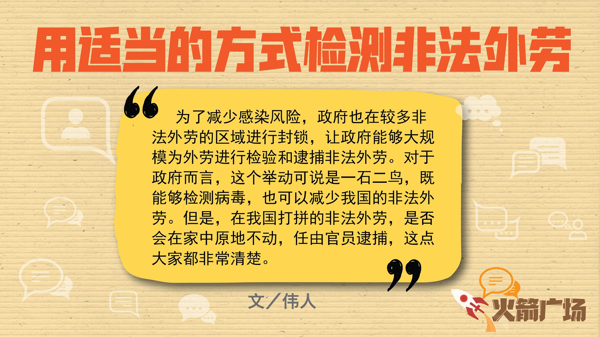 我国疫情已进入最后康复期,非法外劳还是我国的计时炸弹,政府势必在解除限行令前解决非法外劳的问题,避免我国步向领国新加坡的后尘,后果不堪设想。