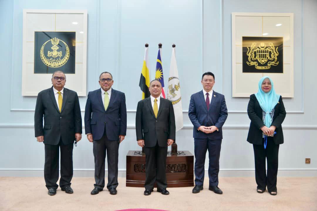 倪可敏受州议长邀请礼貌拜会新任州务大臣拿督沙阿拉尼。左起行政议员拿督朱基菲里、州议会议长查希、大臣沙阿拉尼及拿督诺拉西京。