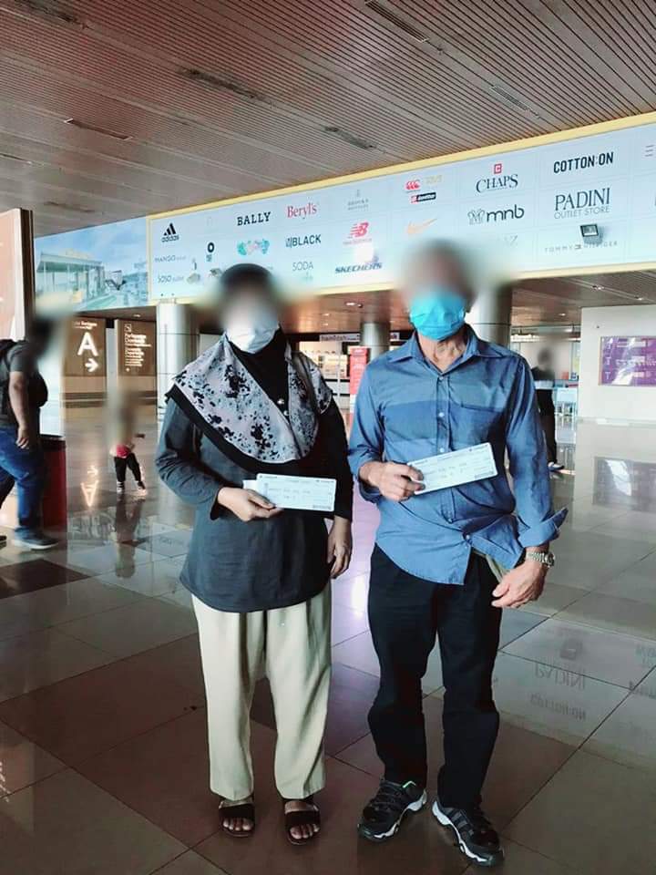 但基于旅行限制,他们的航班前后被取消了两次。他们是分别两次前来古晋搭机,但航班一次又一次被取消。