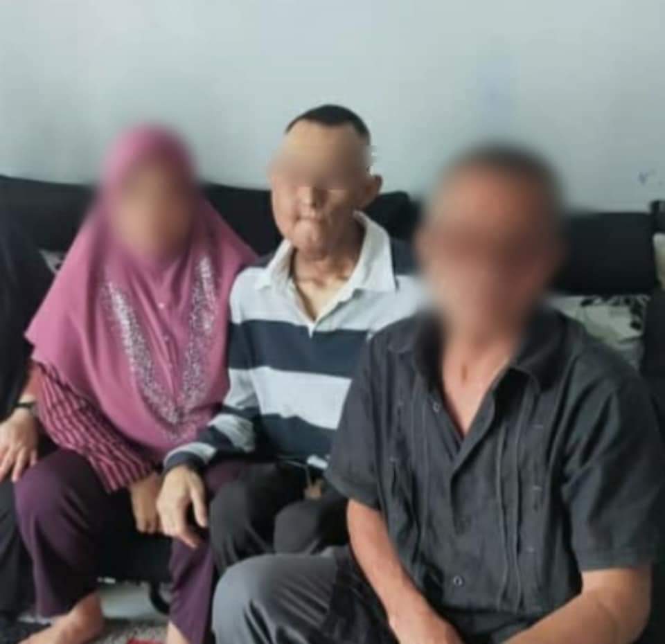 图示:在古晋市国会议员俞利文的协助下,两名长者终于和患病儿子在槟城相聚。