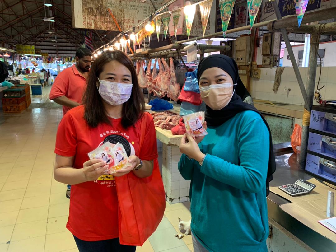 廖彩彤是配合国际妇女节的来临,率领柔佛再也服务中心团队到选区内多个地点,包括柔佛再也早市、巴刹及至达城等地、派送逾800个香皂以感谢及肯定妇女的贡献。
