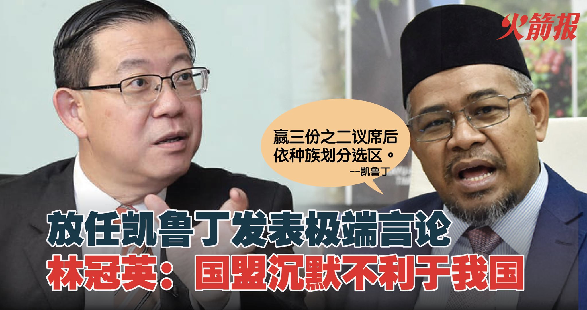 种植及原产业部长凯鲁丁主张国盟要在来届大选拿下三分之二议席,以便推动带有种族和宗教偏见的选区重划,最终利惠穆斯林和马来人。凯鲁丁未能履行其部长职责,还不知羞耻的发表如此具有种族和宗教极端主义的言论。我国部长从来没有像现在这样不负责任,具分裂及违宪立场。