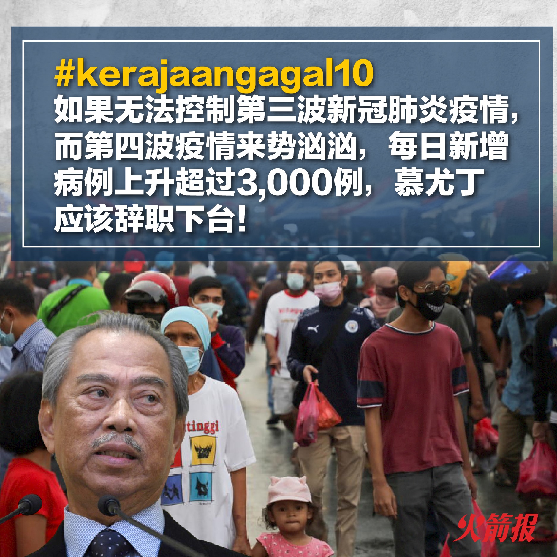 如果不能完全控制第三波新冠肺炎疫情,而第四波新冠肺炎疫情来势汹汹,每日新增病例上升超过3,000例,慕尤丁政府应该因为无能、无用以及违反马来西亚宪法和国家原则而辞职。