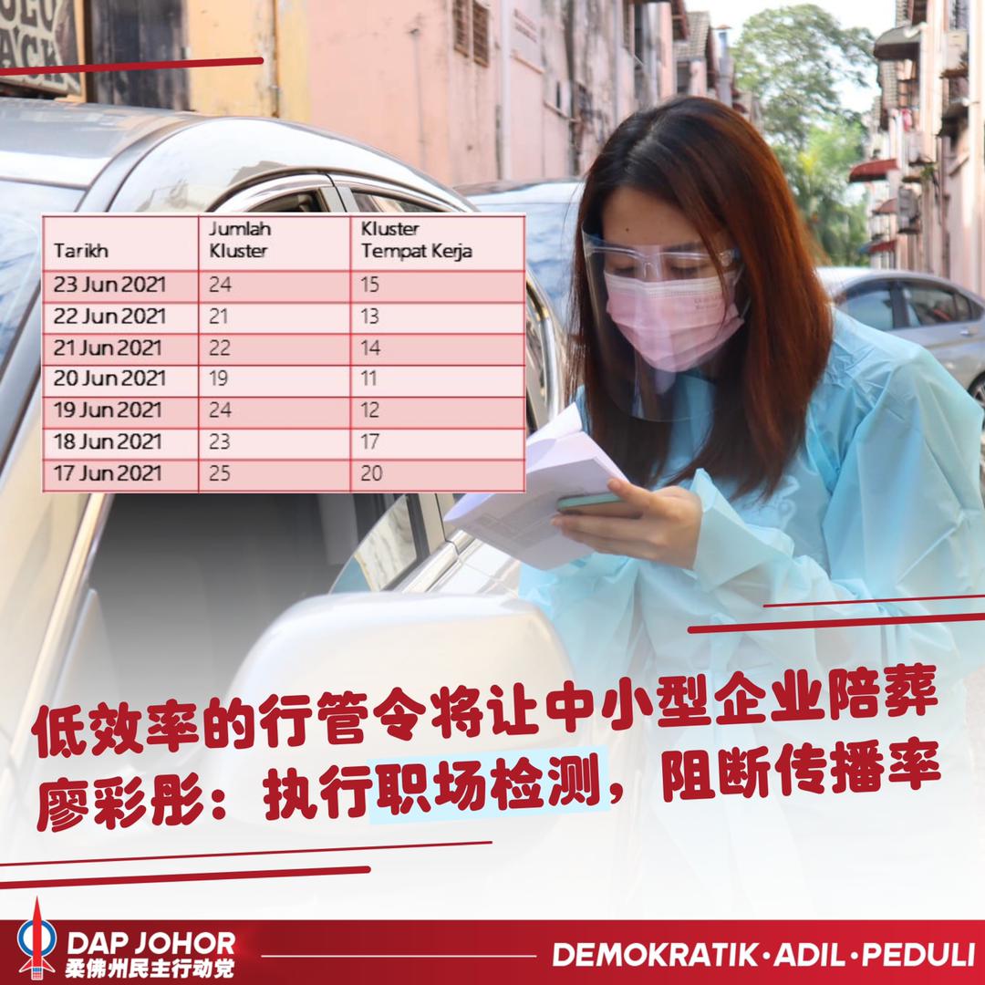 柔佛再也州议员暨民主行动党柔佛州宣传秘书廖彩彤于2021年6月25日发布文告: