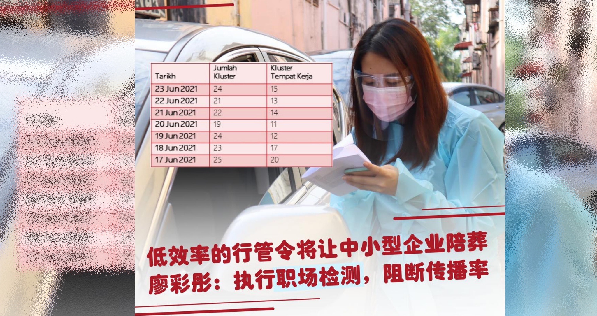 全国全面行动管制令已落实三个星期,但并没有快速降低病毒传染率,而不符合科学考量的标准作业条规,只会让中小型企业成为阻断职场感染群底下的代罪羔羊。