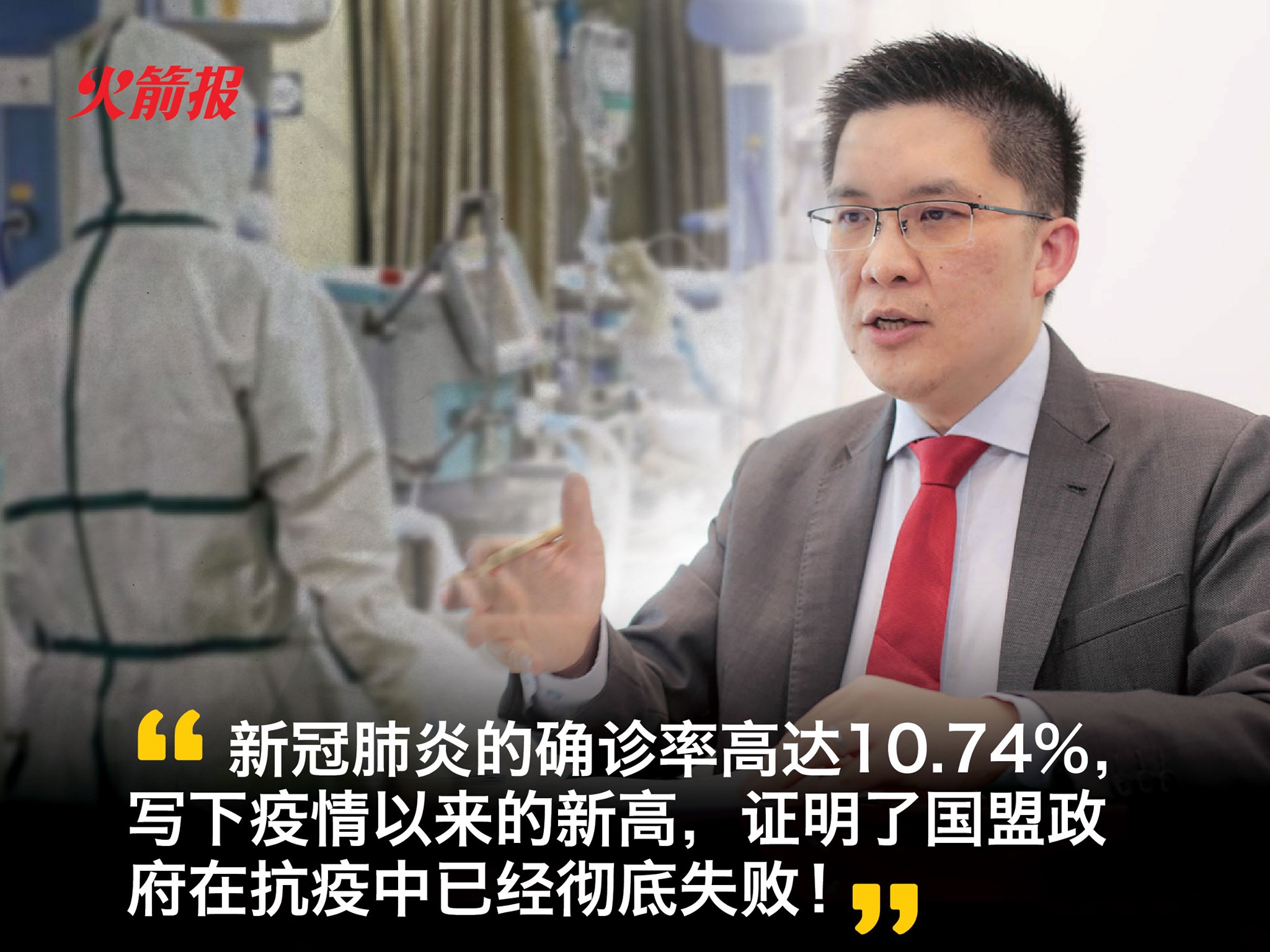 民主行动党怡保东区国会议员黄家和今天表示,昨天的新冠肺炎的确诊率高达10.74%,写下疫情以来的新高,证明了国盟政府在抗疫中已经彻底失败!