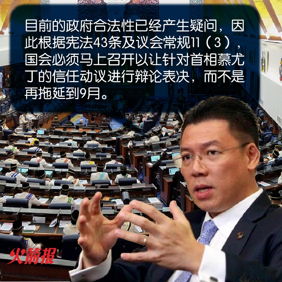 倪可敏指出,由于目前的政府合法性已经产生疑问,因此根据宪法43条及议会常规11(3),国会必须马上召开以让针对首相丹斯里慕尤丁的信任动议进行辩论表决,而不是再拖延到9月。