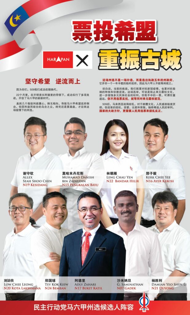 呼吁马六甲选民代表马来西亚人民在明天的州选不要投选国盟和国阵,为着失去接近6000条的人命和近260万宗的新冠肺炎病例,还有马来西亚的新冠肺炎疫情是世界上最漫长的,自去年9月的沙巴州选爆发至今已经超过14个月了