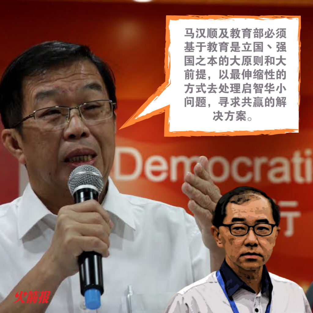 他指出,马汉顺及教育部必须基于教育是立国丶强国之本的大原则和大前提,以最伸缩性的方式去处理启智华小问题,寻求共赢的解决方案。