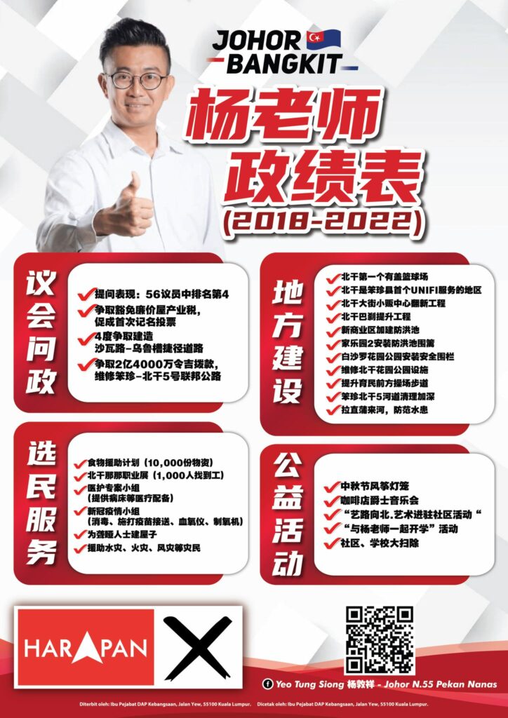 民主行动党北干那那区候选人杨敦祥于2022年3月6日所发表的文告: