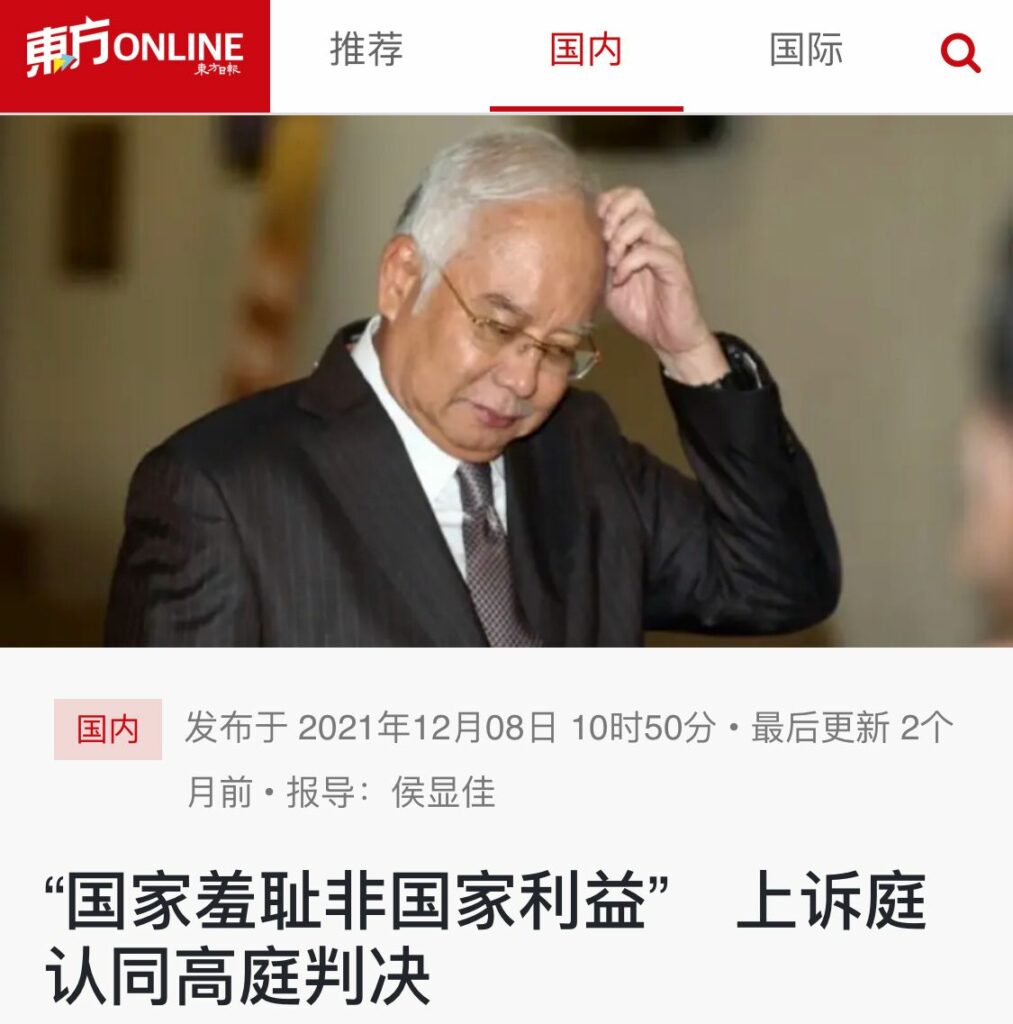 “不仅如此,纳吉罄竹难书的贪污罪行,甚至被法官形容为国家之耻(national embarrassment)。”