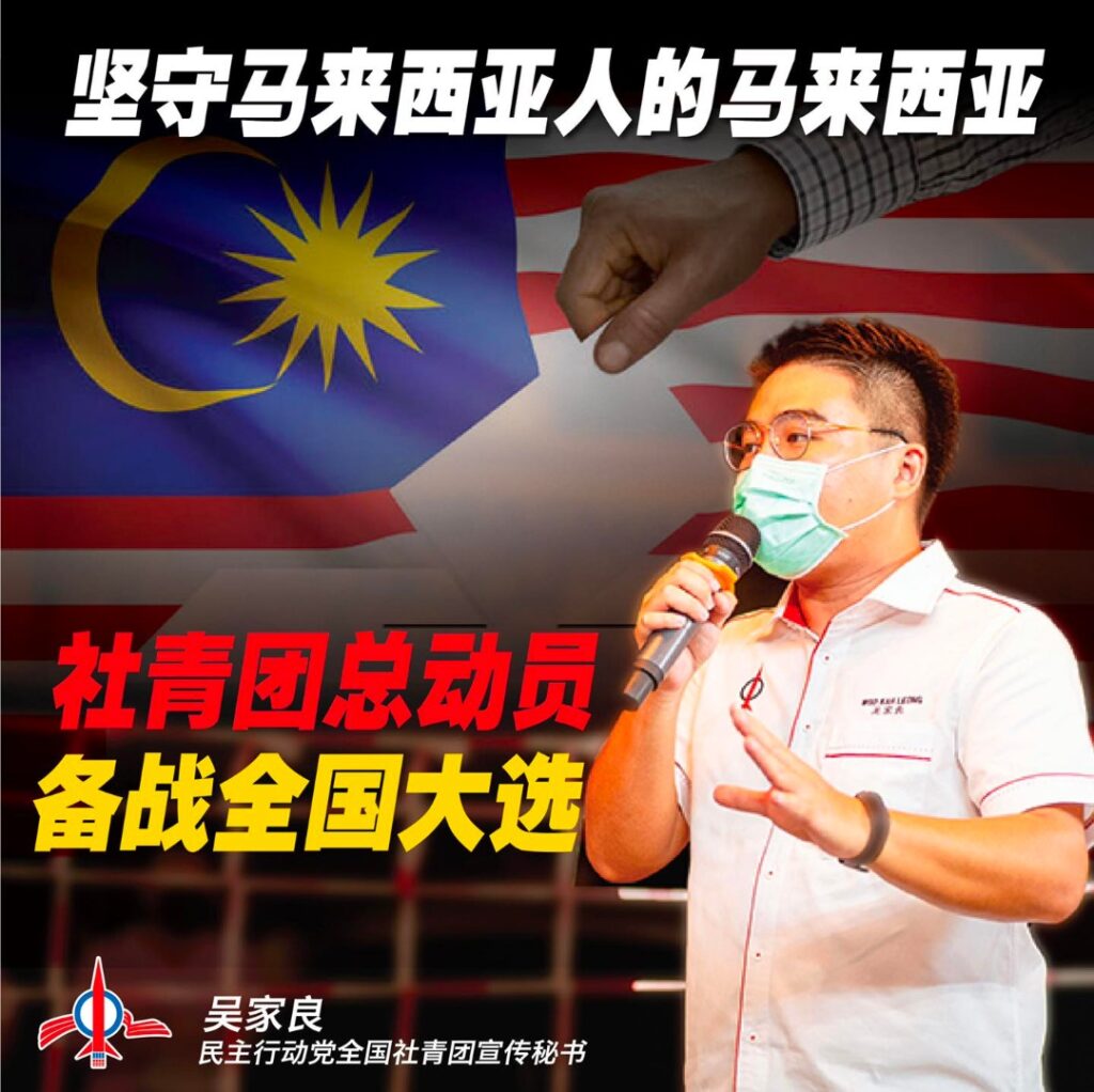 民主行动党全国社青团宣传秘书吴家良今日指出 “马来西亚人的马来西亚” 理念是全国社青团从古至今坚守不变的原则,并会与母体继续并肩作战以迎战史上最激烈的全国大选!