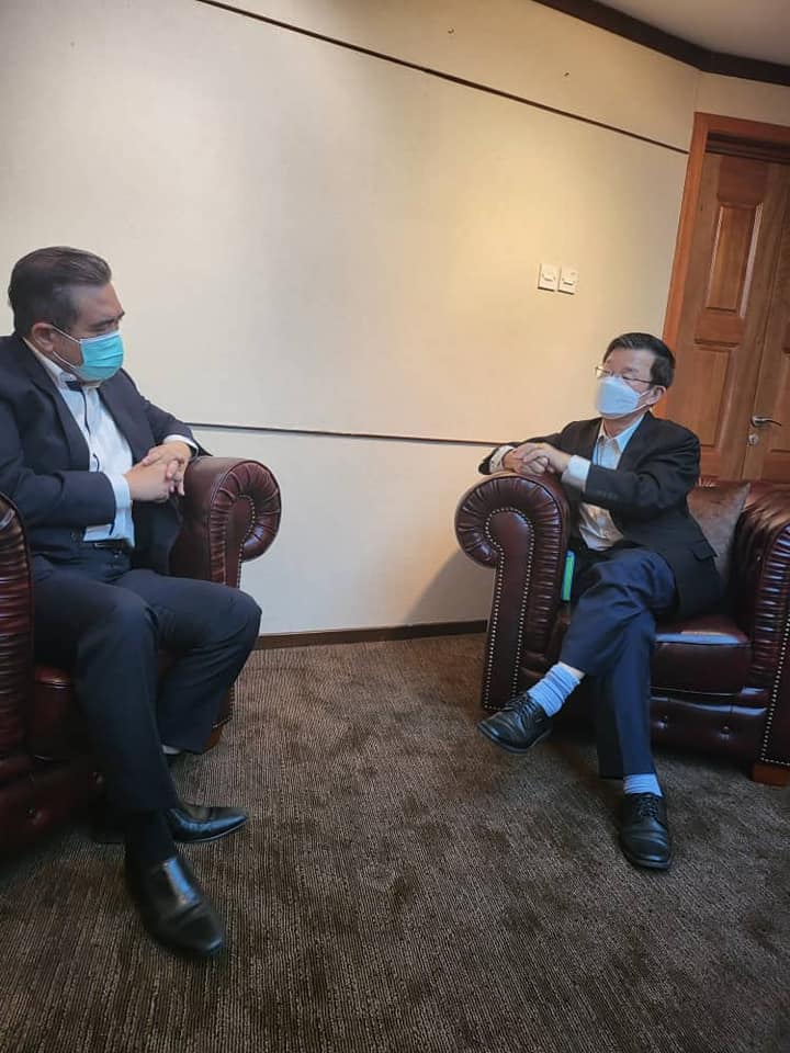 我今早拜访槟州首长曹观友,地点在于光大大厦的槟州首长办公室。