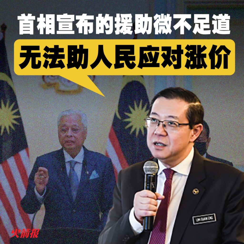 首相依斯迈沙比里推出6亿3000万令吉“创可贴”式的配套,试问如此微不足道的援助,该如何帮助马来西亚人应对暴涨的价格,以及取消鸡肉、鸡蛋和瓶装食油补贴后带来的问题?相比之下,人均GDP 几乎是马来西亚 5 倍的新加坡则宣布了 15 亿新元或47 亿令吉的援助计划,是马来西亚6 亿3000万令吉援助计划的 7倍多。