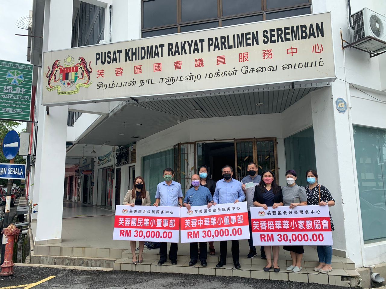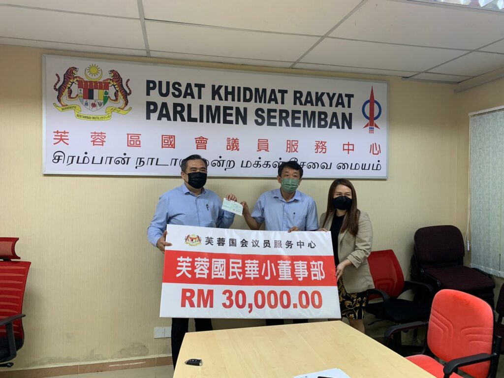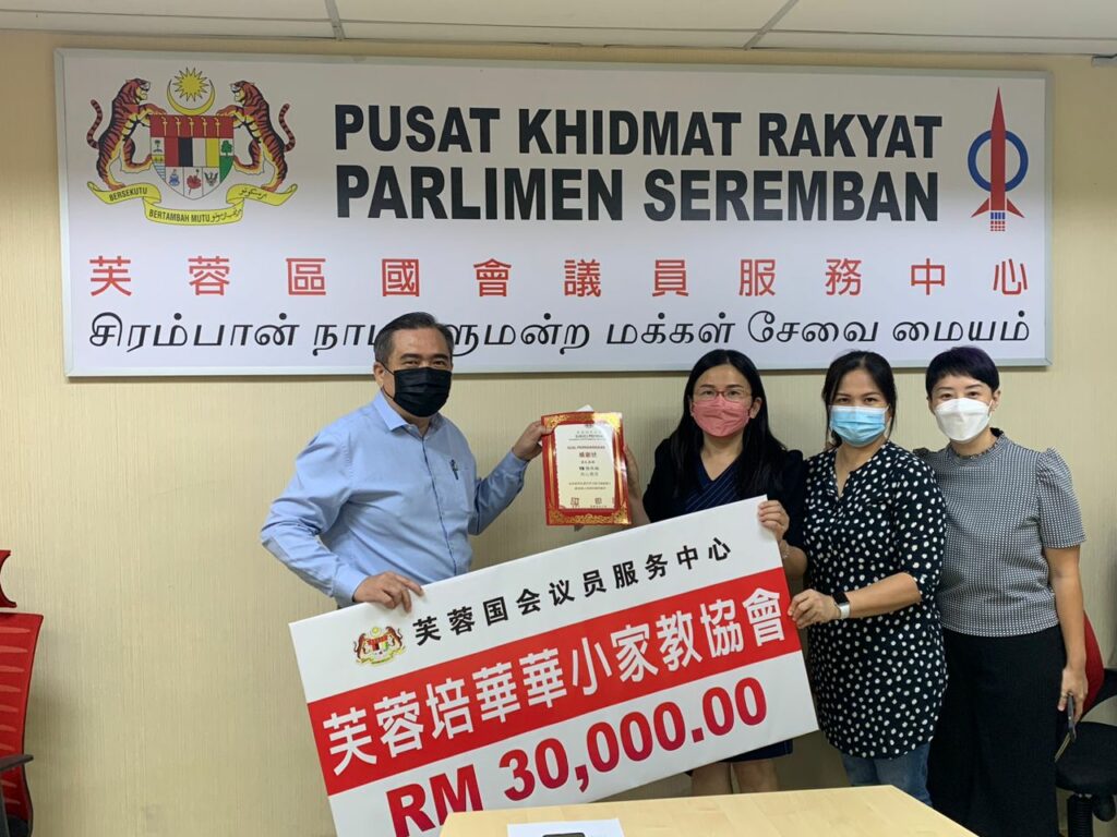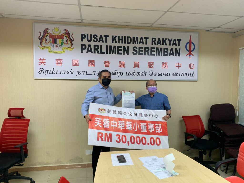 芙蓉区国会议员陆兆福今日在其服务中心移交12万5千令吉拨款给芙蓉区内三所华小,教会及社团。其中,邻恩复兴教会、中华华小、国民华小和培华华小各得到三万令吉,森州校长联谊会则得到5千令吉。