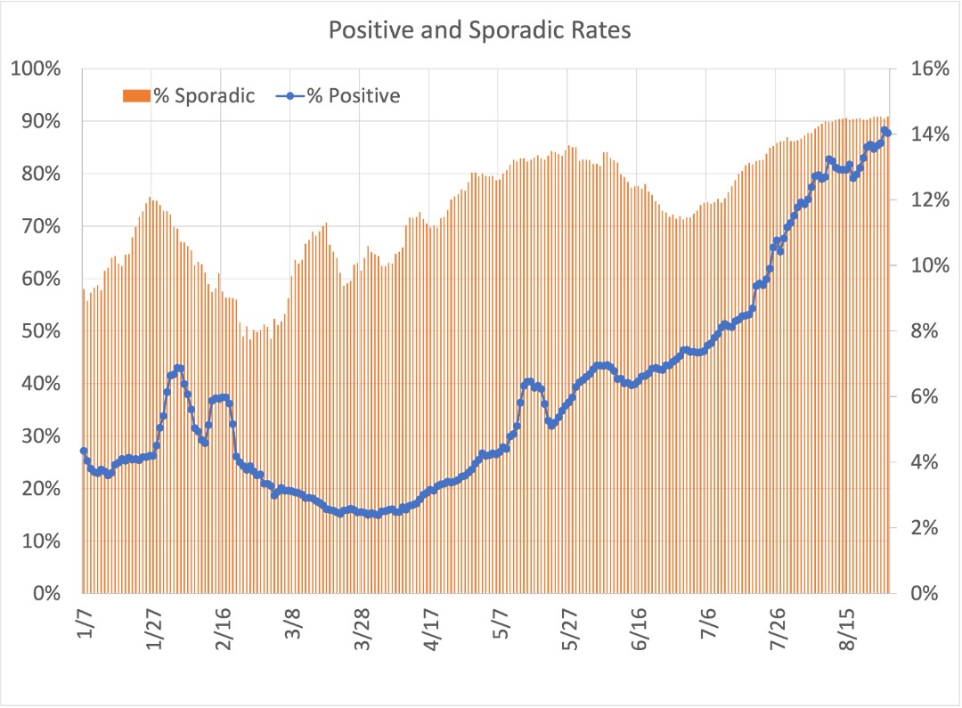 自去年以来,许多卫生专家和国会议员一直呼吁政府根据世界卫生组织(WHO)的5%或更低的阳性率建议进行更多检测。 事实上,中国等成功控制病毒传播的国家的阳性率远低于1%。
