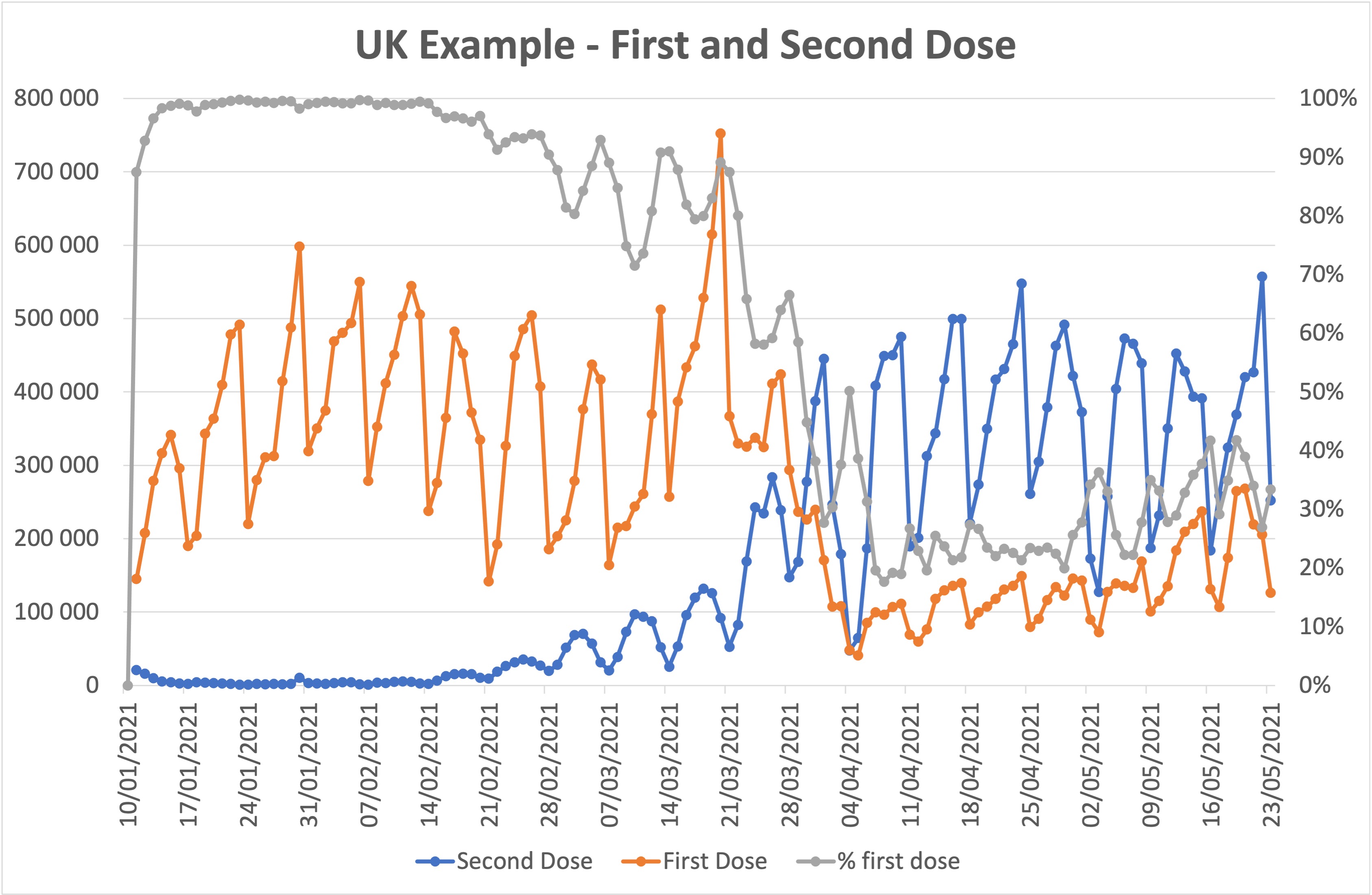 由于英国在线提供了有关疫苗接种(第一剂和第二剂),确诊病例,检测等方面的所有数据,因此我得以分析他们的第一剂和第二剂疫苗分配策略,以下是调查结果。