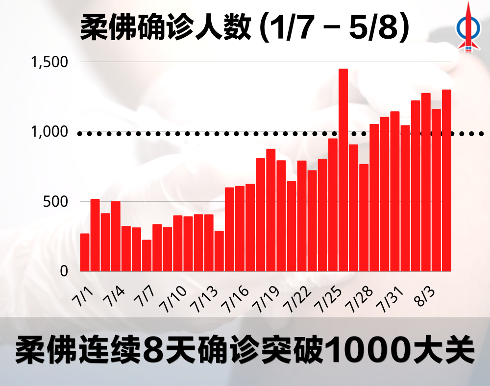 随着全国单日确诊案例首次突破两万,柔佛的疫情案例不仅已经连续21天高于第二阶段复苏标准,也已经连续8天破千(今日1,300宗),确诊案例整体上也呈现上升趋势,疫情正在朝着恶化的方向发展。
