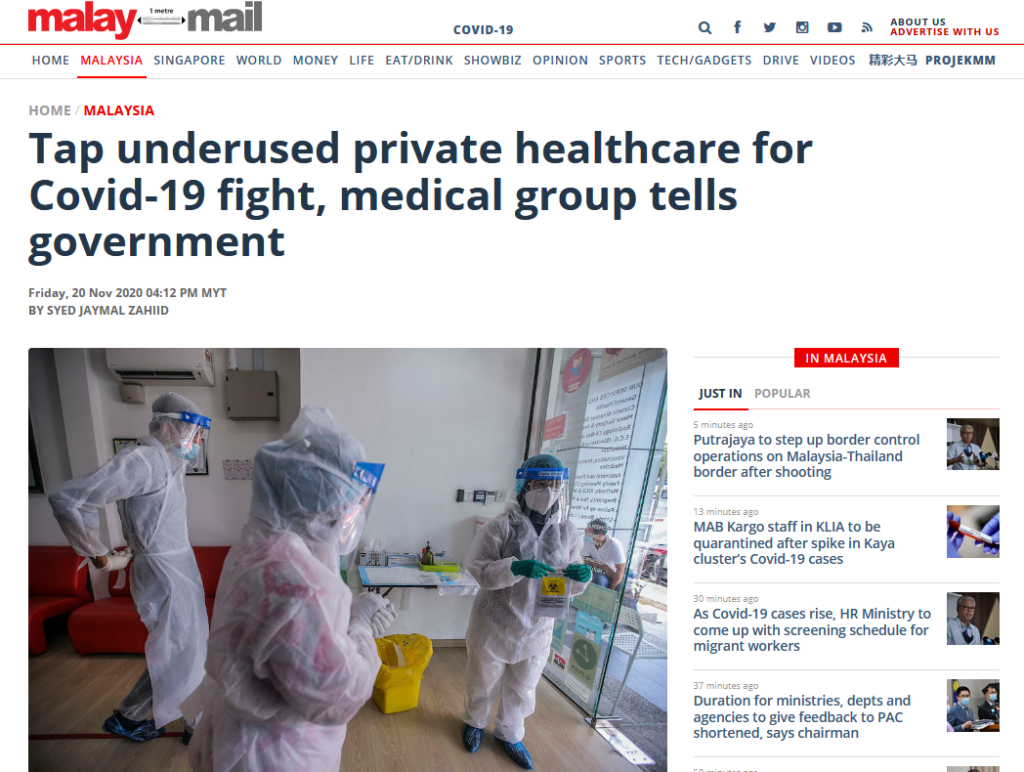 “The Malaysian Medical Association recently called on the government to incorporate private healthcare in its fight against Covid-19, as the sector’s capabilities are being underutilised. There are almost 15,000 doctors in the private healthcare sector – they include your neighbourhood clinics, panel clinics, etc – whose expertise is not being utilised. MOH has already procured the test kits, it would not be difficult to engage these clinics like how we are doing now, to help conduct these screenings.”