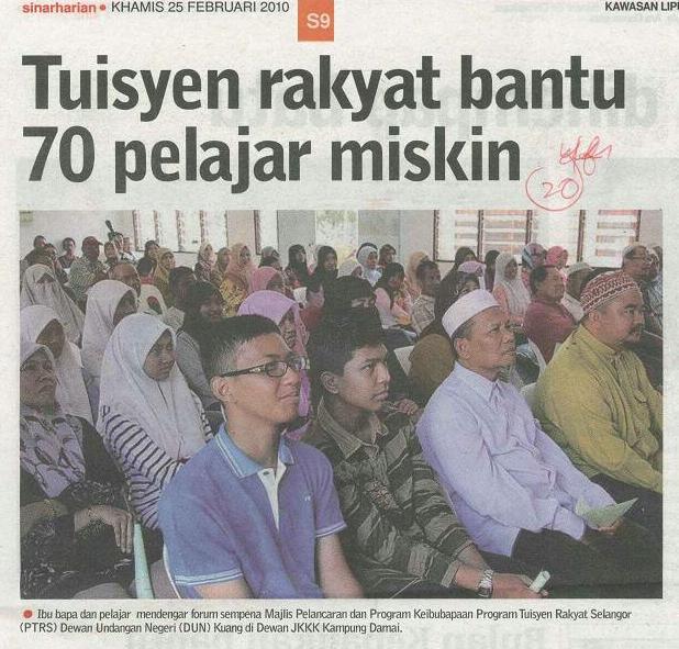 The students are tutored by retired school teachers in English, Mathematics, Bahasa Malaysia and History subjects. This program has attracted more than 8500 participants for 2009 and 2010.
