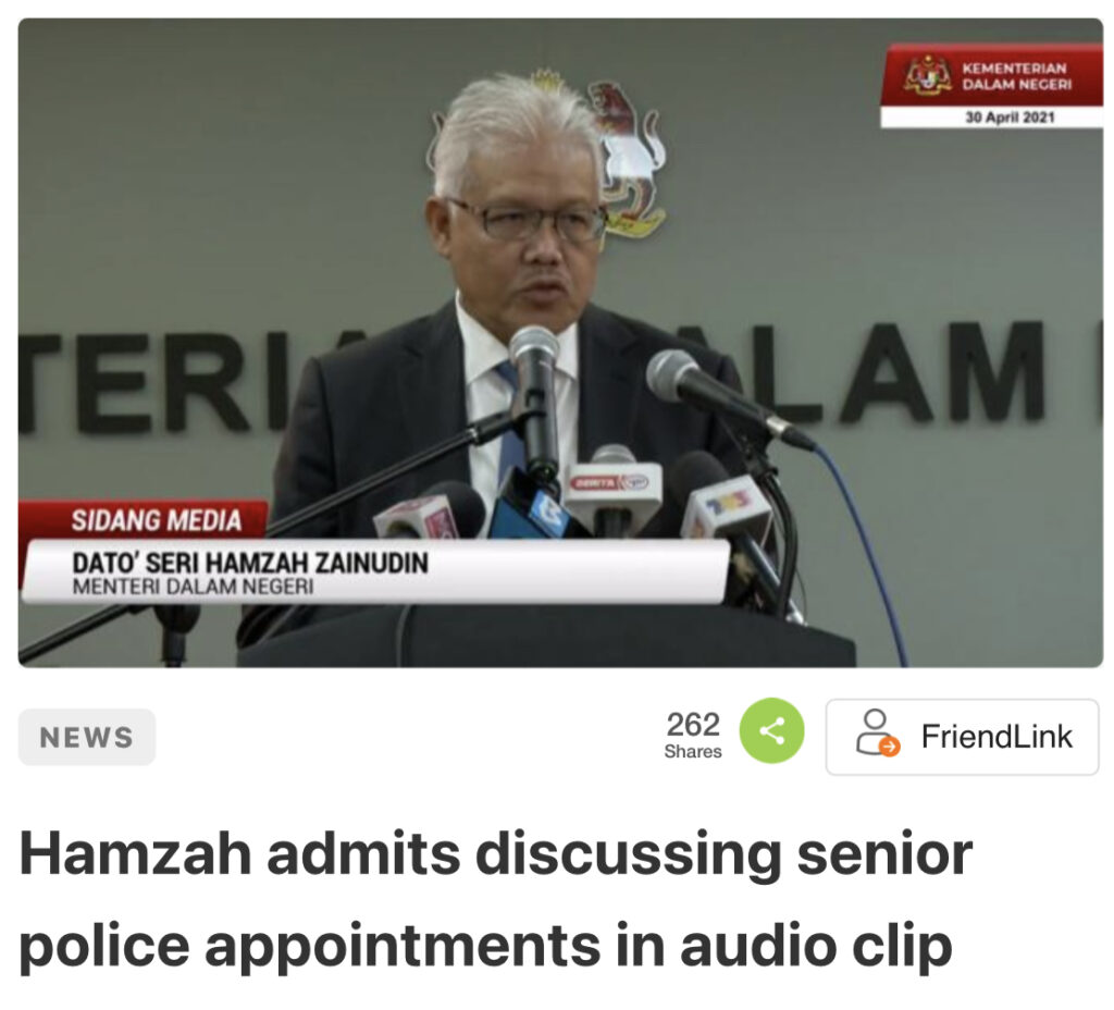 For what Hamzah has done as admitted in the viral audio clip has crossed the red line in a functioning democracy – a Minister who tried to subvert and suborn the independence and professionalism of the Royal Malaysian Police and preventing it from becoming a competent, professional world-class police force.
