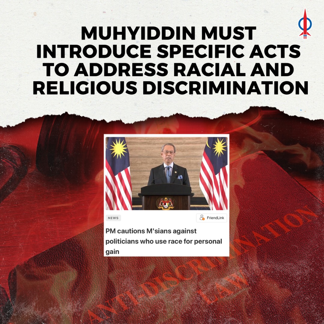 To solve the problem of politicians using racial cards, I urge Muhyiddin to introduce specific acts to address racial and religious discrimination, such as to enact the Religious and Racial Hatred Act and Anti-Discrimination Act.