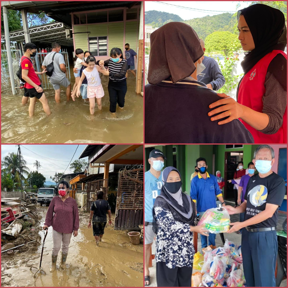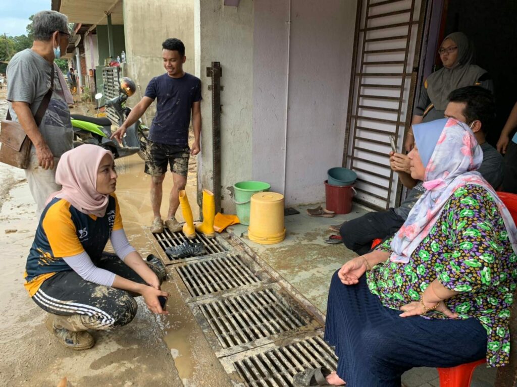 Meanwhile, ADUN for Ketari Young Syefura has kept busy responding to the needs of her constituents. She sent out lorries and backhoes to help them clean up, and went around asking them what they needed and what she could do for them.