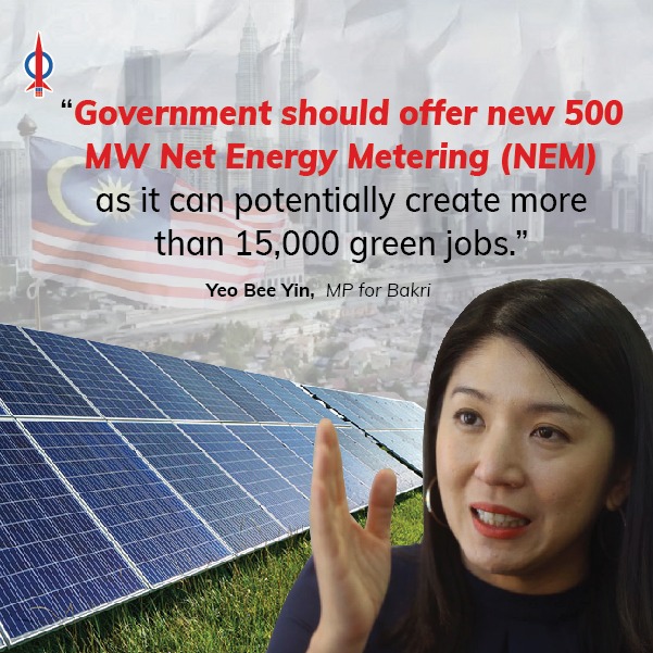 Government should offer new 500 MW Net Energy Metering (NEM) quota to continue the momentum of growth of rooftop solar industry, which can potentially create more than 15,000 green jobs.