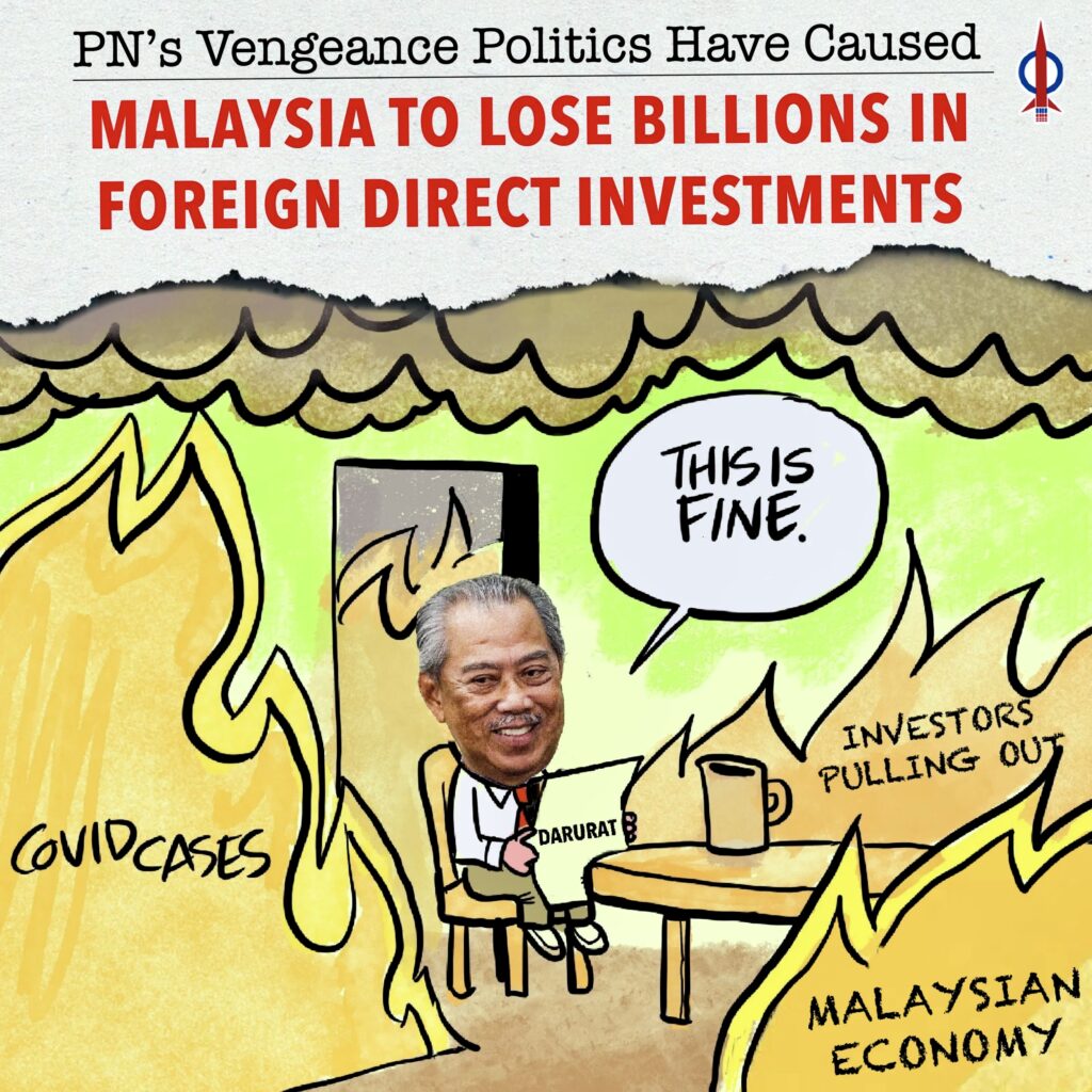 Perikatan Nasional (PN) is slaughtering Malaysia’s FDI “golden goose” with the cancellation of FOUR important infrastructure projects in Penang when the state is responsible for 7 out of 11 high value foreign direct investment into Malaysia in 2020