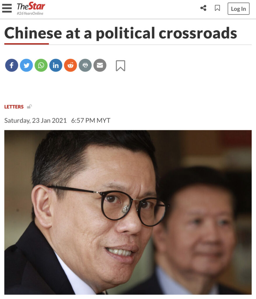 The skewed, oversimplified and naive propaganda aside, it is audacious for Ti, the Deputy Minister of National Unity to project himself as the champion of a particular race over and against the promotion of national identity and social cohesion. However, upon further reflection, Ti was perhaps echoing Prime Minister Muhyddin Yassin who proudly declared that he is a Malay first before a Malaysian. As a result of this sort of racial ideology within the PN government, MCA the self-proclaimed Chinese champion, is now relegated to having almost no voice at all in key policy decisions in the government. Thus, MCA’s Minister and Deputy Ministers are resigned to “enjoying the perks without the works” within PN.