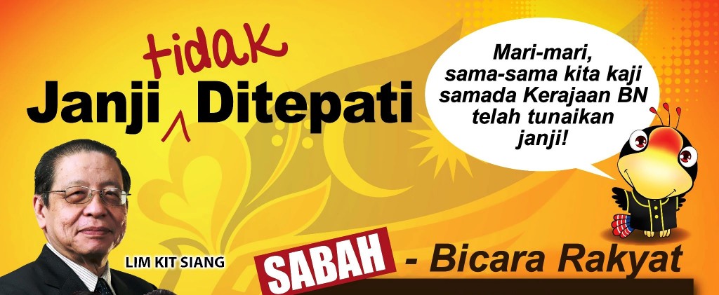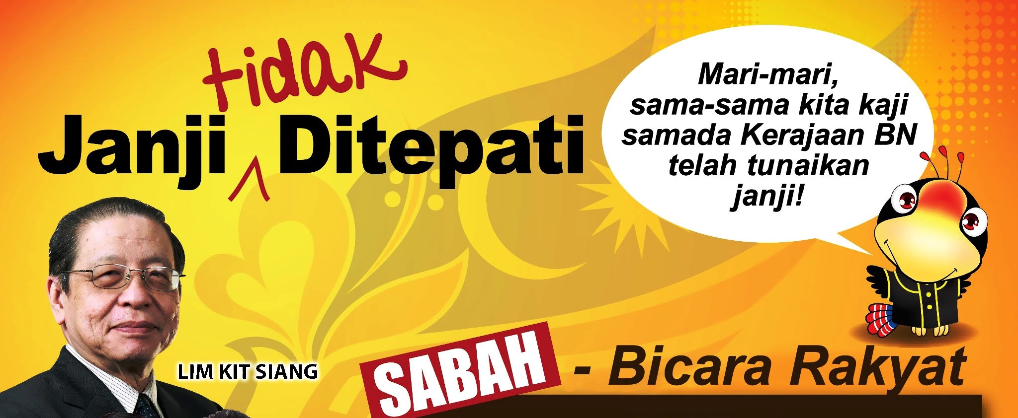 Kini dalam jelajah DAP ke Sabah menelusuri “ Janji ditepai? ” pastinya untuk menyemak kembali dakwaan-dakwaan Najib Tun Razak itu. Adakah benar sudah ditepati atau sekadar propaganda menjelang PRU 13.