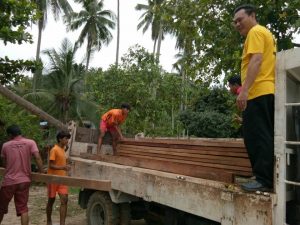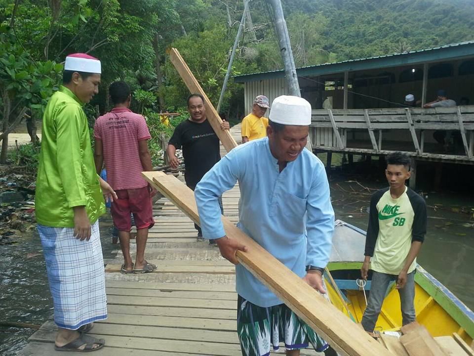 SEPANGGAR, 15 JUN: Penduduk Kg Numbak boleh menarik nafas lega apabila DAP pada hari ini menyumbangkan kira-kira 300 keping papan untuk membaiki surau dan jambatan laluan pejalan kaki kampung atas air itu.