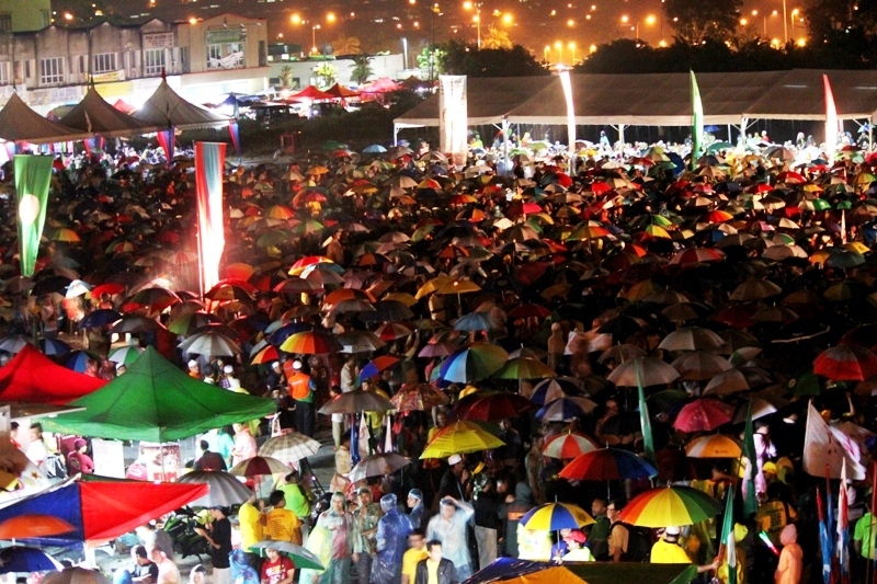 Hujan yang turun lebat sejak jam 2 petang tidak sedikit pun membunuh semangat rakyat sekitar Seremban untuk memenuhi padang yang kian becak digenangi air.