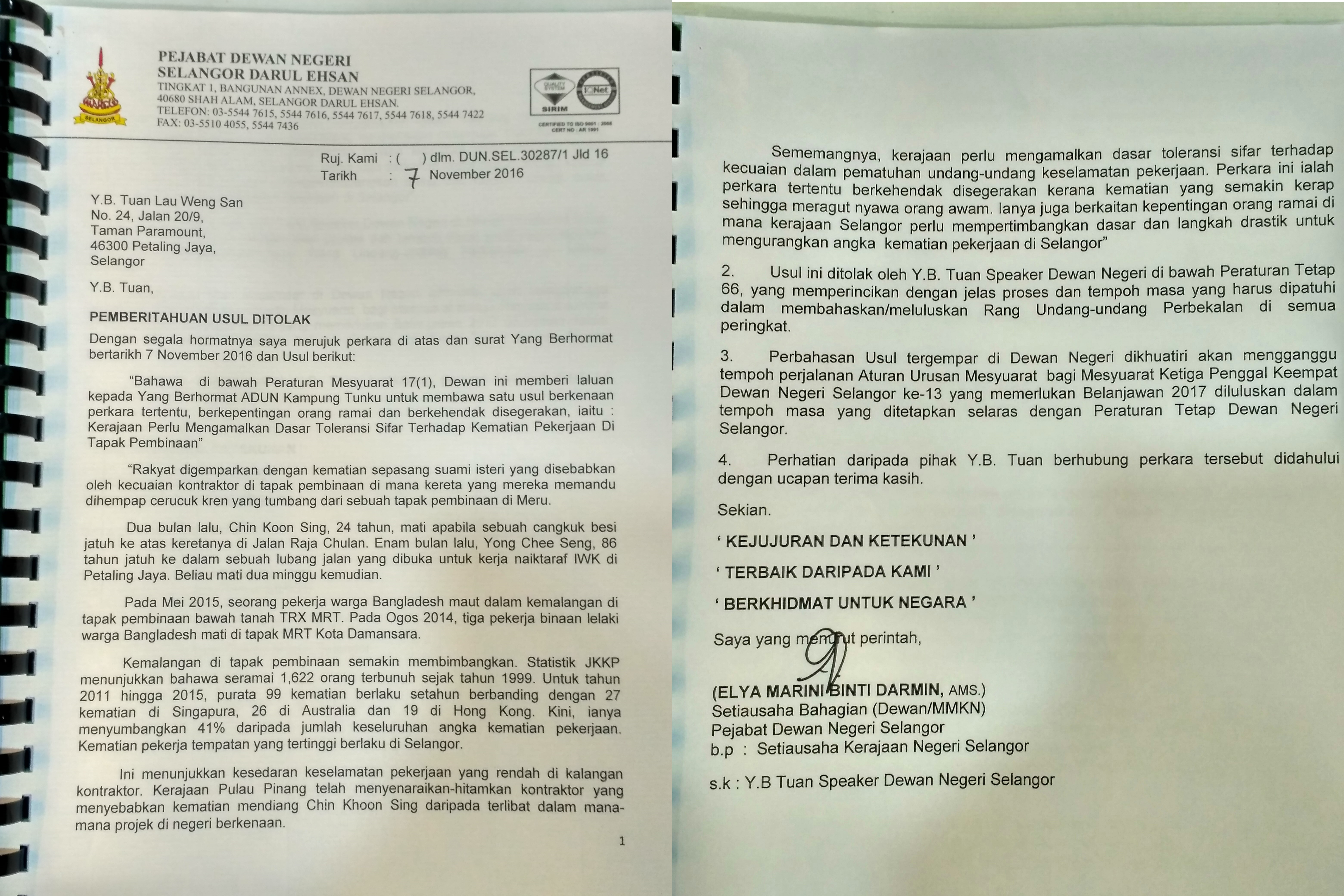 Usul saya tentang kematian di tapak pembinaan WCE di Meru juga ditolak