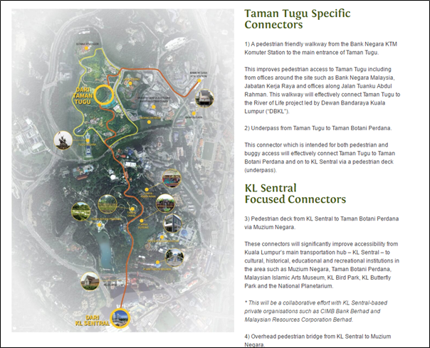 I am glad to note that the Taman Tugu masterplan has taken into consideration the issue of connectivity to public transportation and other nearby recreational attractions such as Muzium Negara, Lake Gardens and the KL Bird Park, just to name a few (See Figure 4 below).