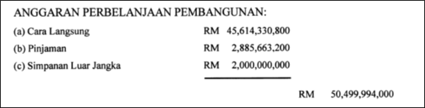 Just to make sure, I checked the Budget Estimates and the latest circular from the Treasury and both of these documents confirm that the development expenditure set aside for 2015 is indeed RM50.5 billion.[2]