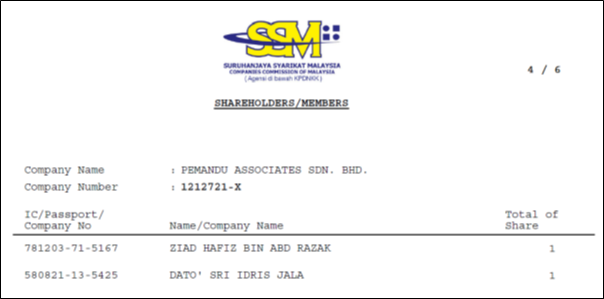 Figure 5: Ownership of PEMANDU Associates Sdn Bhd (downloaded from the Companies Commission of Malaysia / Suruhanjaya Syarikat Malaysia website on the 26th of March, 2017)