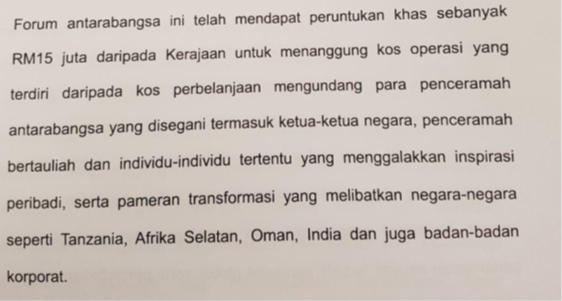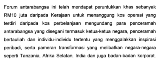 Since the GTF is no longer organized by BFR Institute, which is a government owned and government controlled company, but by a private company, namely PEMANDU Associates Sdn Bhd, how much of the sponsorship of this event, including the RM15 million set aside by the Government of Malaysia, which is going into the pockets of this private company that is co-owned by Idris Jala?