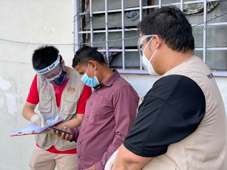 Appendix 7: Interviewing the migrant community at Taming Jaya, Balakong to ascertain their vaccination status (together with agencies including the International Red Crescent and volunteers from UNHCR & Libera8)
