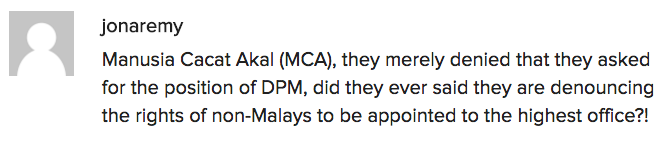 Like one of the comments by netizen clearly pointed out, DAP “merely denied that they asked for the position of DPM, did they ever said they are denouncing the rights of non-Malays to be appointed to the highest office?!”