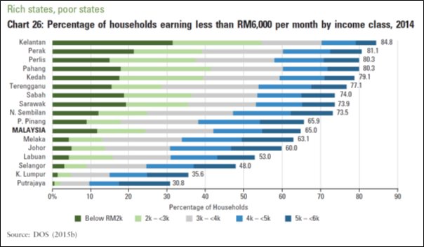I am truly appalled at the ignorance of the Minister in charge of the EPU as demonstrated by his statements on the KRI report.[3] The data showing that Perak had the 2nd highest number of households earning less than RM6000 a month was obtained from the Household Income and Basic Amenities Survey 2014 which was carried out by the Department of Statistics (See Chart and source).