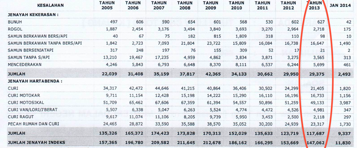 How can we have two different sets of crime statistic for the year 2013? And the difference between these 2 sets of statistic is huge. Instead of busy probing Pakatan members of Parliament under Sedition Act, can our Home Minister spare some time to explain to us the discrepancies?