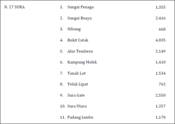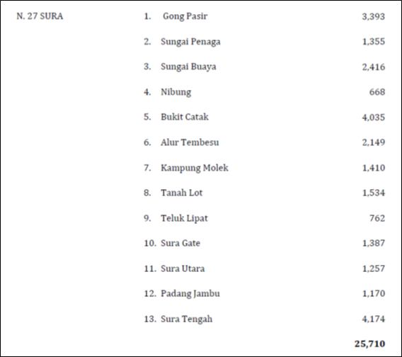 Figure 3: Sura Gate polling station in N27 Sura state seat in P39 Dungun parliament seat with 1387 voters in Syor 1